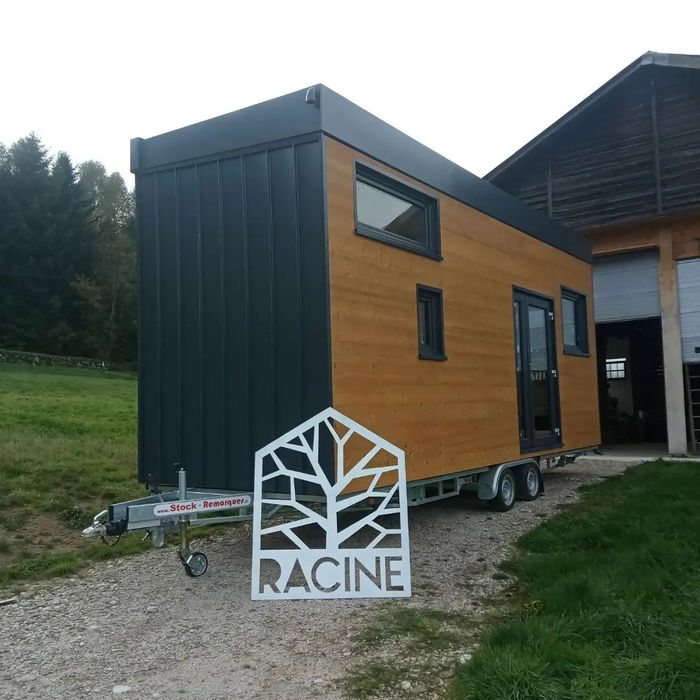 C’est la toute première de la famille Racine. Une Tiny house compacte de 6 mètres de long, au look moderne et autonome. Elle possède un atout unique : son toit sur glissière permet de découvrir complètement l’habitat afin de profiter des nuits d’étés à la belle étoile. Une innovation brevetée ! Cela permet d’améliorer le confort d’été en ouvrant le toit afin d’avoir un flux d’air dans toute la Tiny. La grande mezzanine propose un lit double, et il est possible de transformer le canapé en lit double afin d’accueillir 2 personnes supplémentaires.